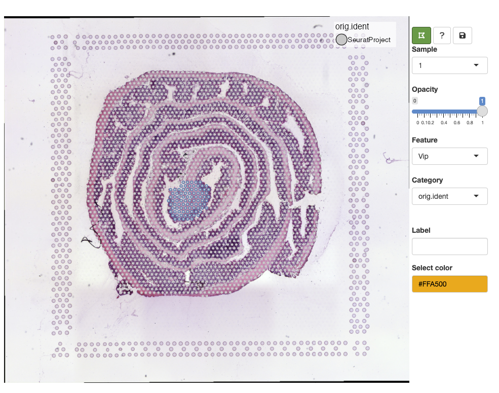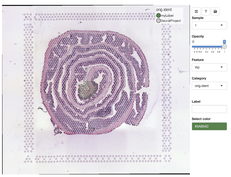 labels. Before we can add a new label, we need to select spots with the
