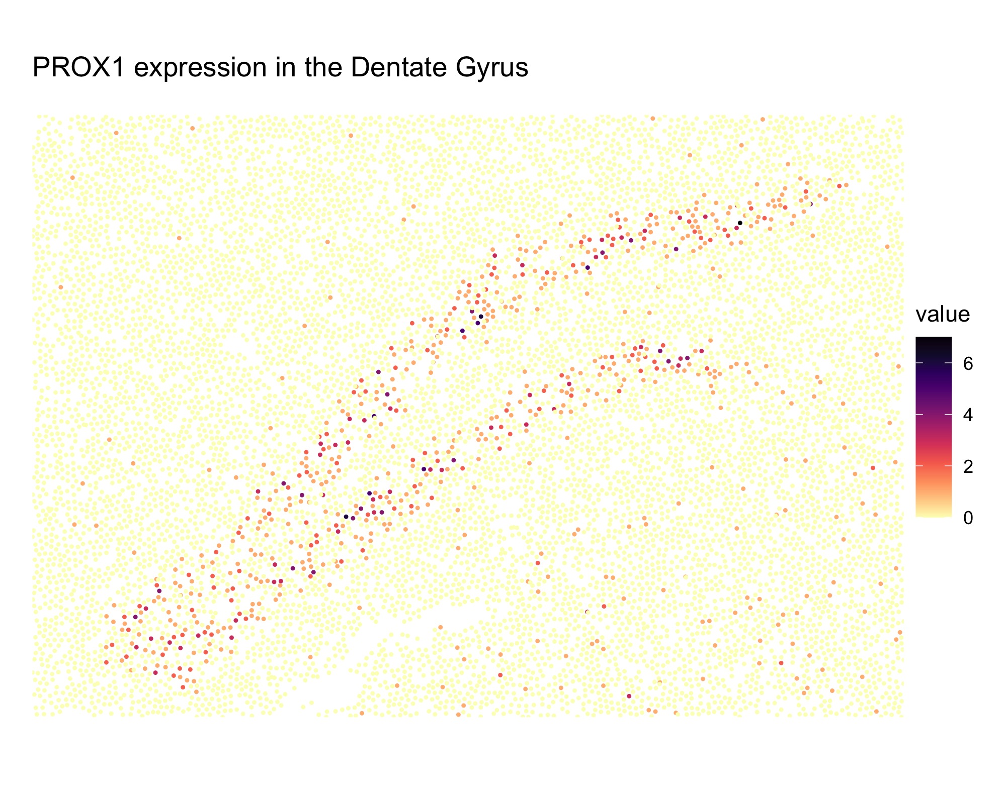 ggtitle("PROX1 expression in the Dentate Gyrus", subtitle = "")